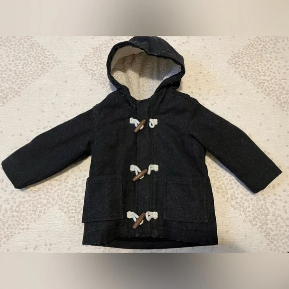 Thick & very warm toddler jacket, in good used condition. Some minor wear like fading and piling but overall good!