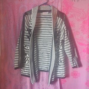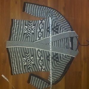 Thick Knit Black White Patterned Striped Winter Cardigan Sweater Jacket