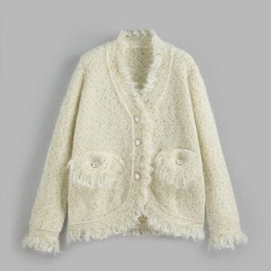 Thick Knitwear: Faux Pearl Buttons Lightweight Cardigan