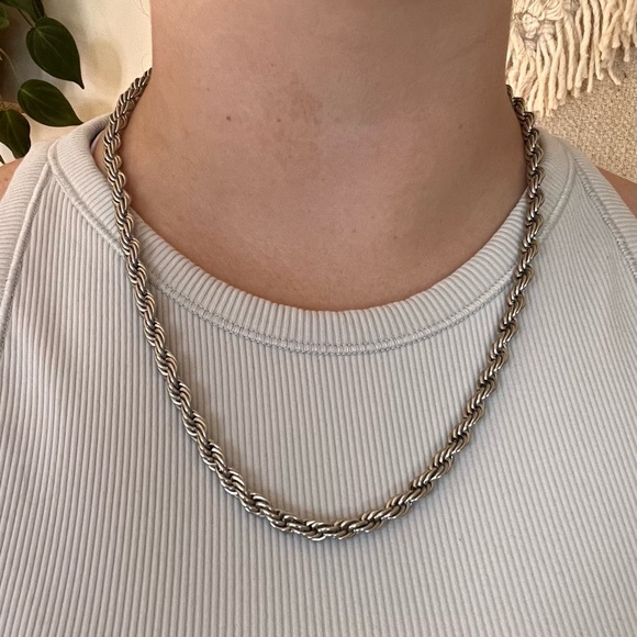 Thick rope chain necklace. Only worn twice. 21 1/2 inches in length. Stainless style material.