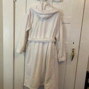 Get your home spa feelings 🧖♀️ with this cozy, thick cotton terry robe. Hooded with 2 front pockets and waist belt. Very gently used, no visible signs of wear or pilling. It is size S/M but definitely best for a shorter person.