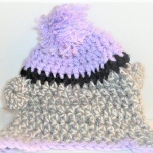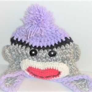 Thick Wool Hand Knitted MONKEY HAT Kids Hat Pom Pom Hat Vintage Hat Toque