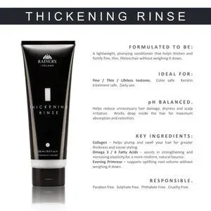 Lightweight THICKENING RINSE uses Collagen to help plump and swell your hair to provide greater thickness for easier styling.