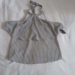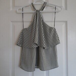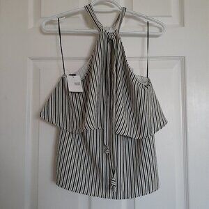 Thieves Like Us Nordstrom new with tags women's size XS halter tie neck blouse tank top in a black and cream pinstripe pattern.
