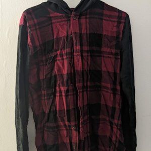 Forever 21 - Men's Medium - Red Plaid Hooded Sweatshirt
