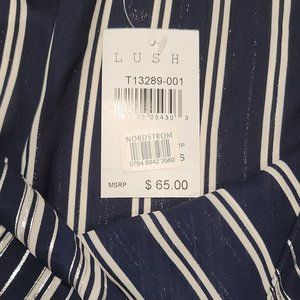 Thin strap long sleeve blouse silver and navy stripes. Ties on cuffs. Lush brand. From Nordstrom