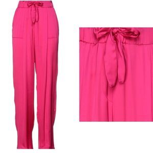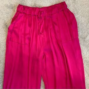 Think Be hot fuchsia pink satin high waisted straight leg drawstring pants Sz L