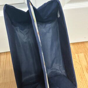 his colorful and versatile Thirty-One Double Duty Caddy is perfect for your travel, workwear, or casual needs. With a collapsible square shape, it measures 10" in width, 8" in depth and 10.5" in height. The exterior is made of durable polyester material with an ice cream pattern, while the interior is lined with blue cotton and features a top handle in multicolor.