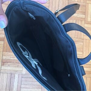 Stylish black backpack featuring a blue monogram 'K'. Perfect for everyday use.