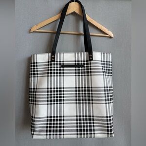 Buffalo check tote | Plaid tote bag | Thirty-One tote | Large shoulder bag | Fall winter bag | Everyday plaid bag | Structured tote | Preppy tote style | Minimalist weekend bag | Work bag with room | Neutral checkered bag