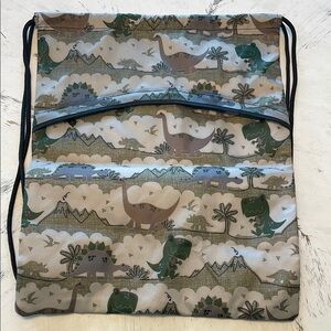 Thirty-One Cinch Sac Dinosaur Backpack New without tags. Fun dinosaur print drawstring backpack. Features a mix of green, brown, and gray colors. Perfect for kids or casual outings.