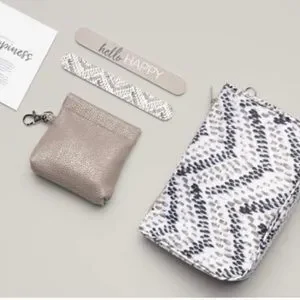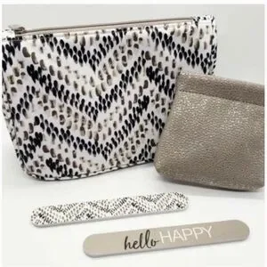 Chic pouch with black and gray pattern. Ideal for organizing essentials and cosmetics. Brand new in bag.