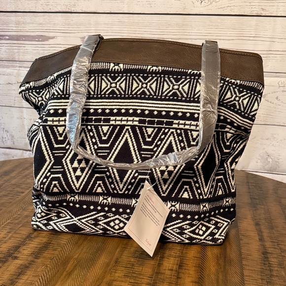 Stylish and spacious, this brown and black patterned tote bag is perfect for everyday use. Its unique design adds a touch of elegance to any outfit.