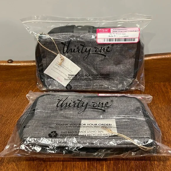 Thirty-one Go-To Snack Box in charcoal crosshatch