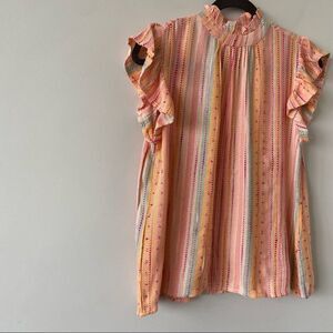 Thml-orange Creamsicle Embroidered Stripe Flutter Sleeve Top (Size:XS)