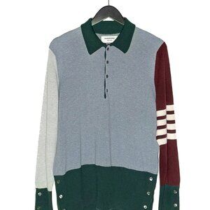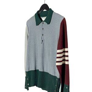 Thom Browne Blue Burgundy Green Colourblock Cashmere Long Sleeves Polo