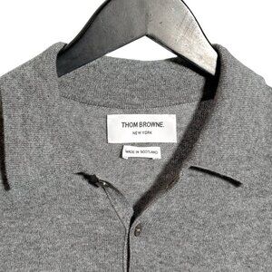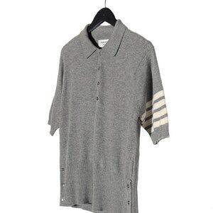 Thom Browne Grey Cashmere 4-Bar Short Sleeve Knit Polo Shirt