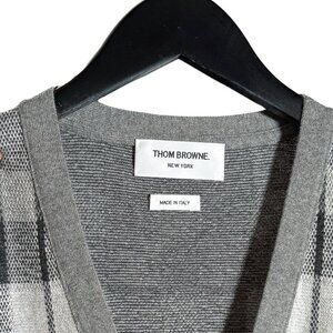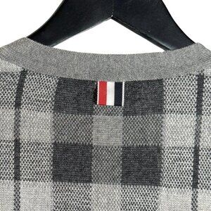 Thom Browne Grey Cashmere Tartan Check Cardigan Sweater