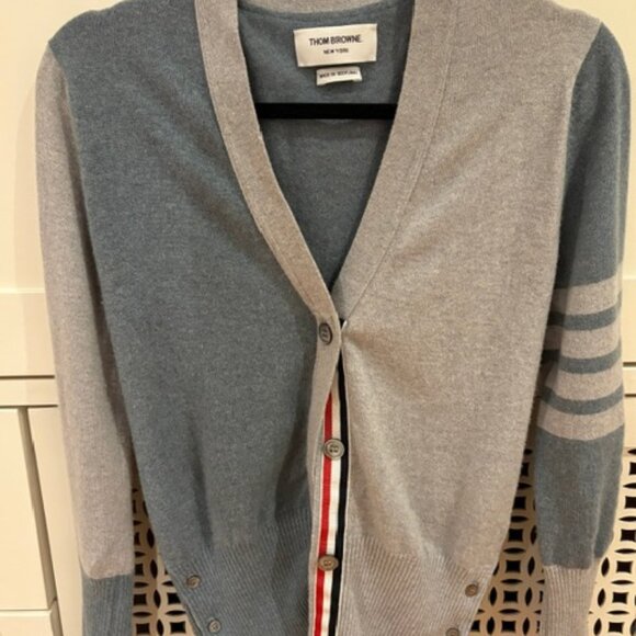 Thom Browne Women's FunMix Gray V-neck cardigan. Lightly worn.