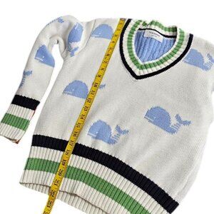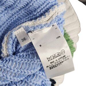 Thom Browne Womens V-Neck Whale Knit Cotton Sweater, Striped, Size 36