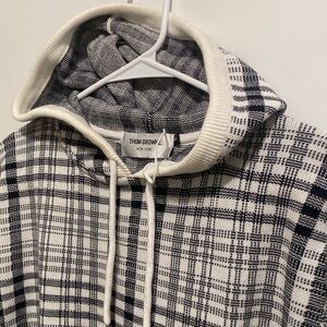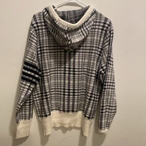 Stay stylish and comfortable with this plaid hoodie. Featuring a classic black and white design, it's perfect for any casual occasion.