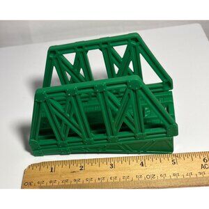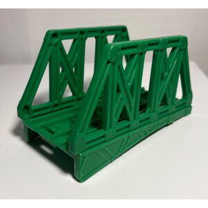 This green plastic toy train bridge is a sturdy and reliable addition to any wooden railway system. Its durable construction ensures long-lasting play, while its vibrant color adds a pop of excitement to your train setup. Measuring 3 inches in height and 6 inches in length, it fits seamlessly into your collection.