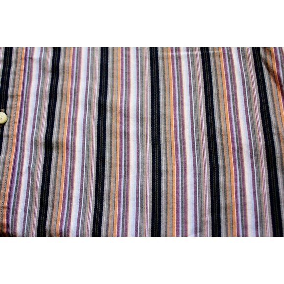 Thomas Dean Button Down Shirt Mens M Flip Cuff Orange Purple Stripe Cotton