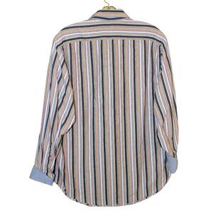 Thomas Dean Mens Medium Button Down Shirt Flip Cuff Multi Color Stripe 100% Cotton Shirtmakers Cloth