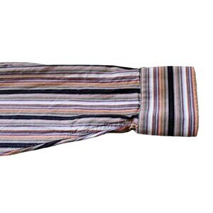 Thomas Dean Mens Medium Button Down Shirt Flip Cuff Multi Color Stripe 100% Cotton Shirtmakers Cloth