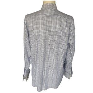 Thomas Dean SZ M French Cuff 100% Cotton Navy/White Plaid Men's Button Up Shirt