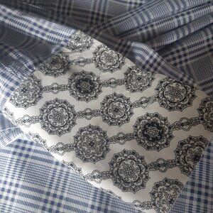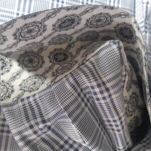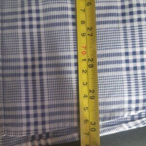 Thomas Dean SZ M French Cuff 100% Cotton Navy/White Plaid Men's Button Up Shirt
