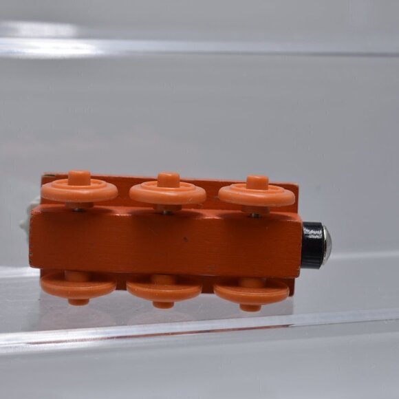 It is a 3" wooden train with small signs of wear