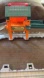 Fold out playset featuring an oval of track with an engine lift and ramp. Your train can go underneath the shed or be raised on the lift to go inside the shed and down the ramp.