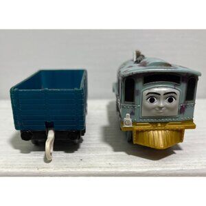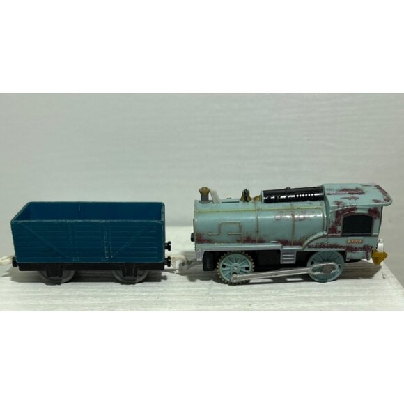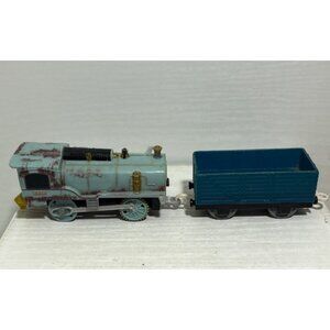 A collectible Thomas & Friends Trackmaster Rusty train engine with a matching freight car. Quality diecast construction ensures durability and authentic design.