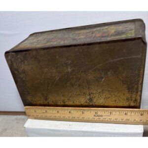 Thomas J Lipton Tea Tin Planters Hinge Lid Scenic Graphic Rustic Patina 9x6x4.5"