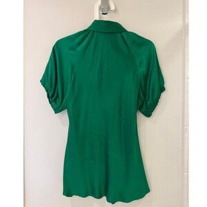 Thomas Pink Green 100% Pure Silk Short-Sleeve Blouse/Shirt
