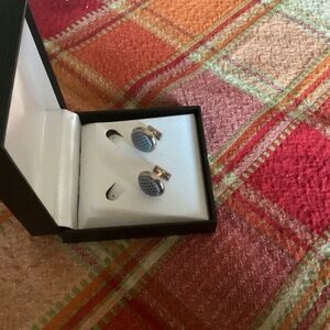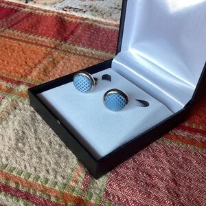 Ginuwine Thomas pink cufflinks. UK origin. Raised blue material centre in a silver style setting.