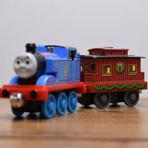 Thomas w/ Holiday Caboose Christmas 2002 Diecast Train Take Along Thomas Friends