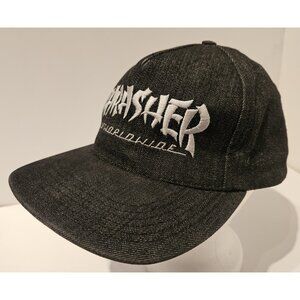 • Thrasher HUF Worldwide Snapback Hat Blaxk Denim Y2K Skater 100% Cotton USA