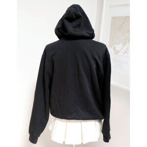 Soft and comfy skater hoodie in a Japanese inspired font in pale pink and white on black. Pull over style with front kangaroo pocket and plain back.