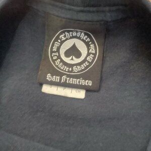 This Thrasher Skateboard Magazine T-Shirt is a must-have for any skateboard enthusiast. The black shirt features the iconic Thrasher logo and is made with regular fit and short sleeves, perfect for any casual occasion. The shirt is available in size small, suitable for both men and women. The T-shirt is made of high-quality material and is designed to provide comfort and durability. It is perfect for wearing to skate parks, streets, or anywhere else. This T-shirt is a great addition to any skateboarder's wardrobe. Get yours today!