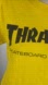Bright yellow Thrasher t-shirt with bold black lettering. Perfect for casual wear. In good used condition