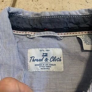 Thread & Cloth Men's Short Sleeve Button-Up Shirt - Blue & White Micro Stripe- L