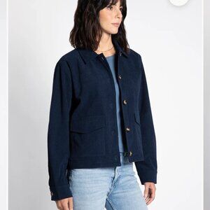 Elevate your casual wardrobe with this stylish and versatile Thread & Supply Women's Hughes Jacket in a deep, classic navy. This jacket blends the soft texture of corduroy with a trendy, workwear-inspired silhouette, making it perfect for year-round layering. A perfect piece to throw over a simple white tee and jeans, or to dress up a skirt and boots for a slightly more polished look. It's lightweight structure makes it easy to pack for trips.