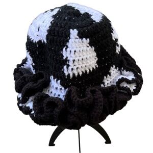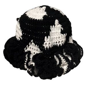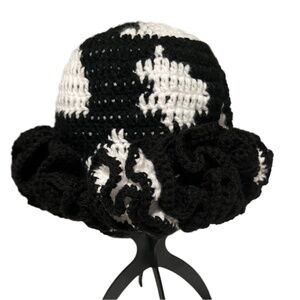 Discover the charm of the handmade black and white ruffle hat from ThreadsByHannah. Each hat blends classic black and white yarn in a bold, eye-catching pattern. The wide ruffled brim adds style and a touch of playfulness to any look.
