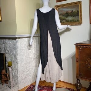 This Threadz maxi dress is in excellent preowned condition, it’s lovely and elegant in it’s simplicity with its two layers in Black and Tan.