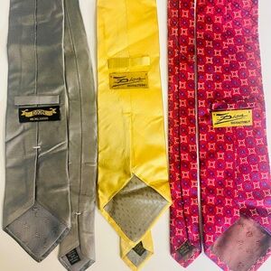 Excellent condition (minus the wrinkles, which I'll likely have steamed out prior to shipping), made of 100% silk. All three ties are standard size.