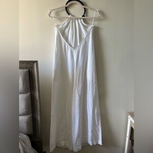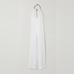 The loose, flowy fit of Three Graces London's 'Karla' jumpsuit is just what you'll want on vacation. It's made from linen-voile that's elegantly threaded on a black leather halterneck strap and has an open back. Match your sandals to the braided trim