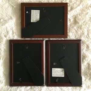 Very good preowned condition lot of three, dark brown, composite wooden frames. Each overall frame is roughly about 6.5" x 8.5". Windows are 4.5" x 6.5", for 5" x 7" photos or postcards. Please see photos for exact measurements. Perfect for postcards, photos, shrines and mini art displays. Two of them are simple and identical, while the third has some beveling throughout the frame. They are all created by Uniek. the pictures currently inside are a little too large for the frames, but they will be included. If you would like the wrapping paper borders as well, just let me know. The photos themselves may need to be secured to a mount or photo corners as they are smaller than the actual frames.