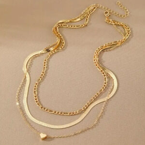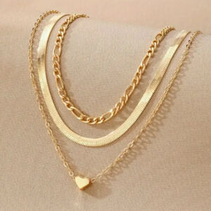 Three Piece Gold Tone Stacking necklace Set - NEW